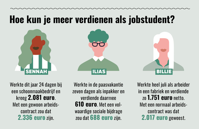 Van een andere orde is dat door het studentencontract jongeren rechten en premies als vakantiegeld, de werk- of jobbonus mislopen. Evenmin hebben ze recht op een minimumloon of tellen de gewerkte periodes mee voor de opbouw van sociale rechten voor een uitkeringen bij bijvoorbeeld ziekte of op langere termijn hun pensioen.