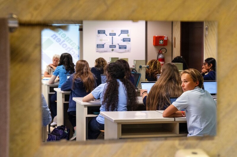 Dounia Bourabain: 'Een hardnekkig probleem in Vlaanderen: studenten met migratieachtergrond stromen minder vaak door. Dat is geen individueel tekort, maar een structureel patroon. Wij willen dat niet laten gebeuren. Daarom is diversiteit geen vak, geen slogan, maar een leerlijn die door de drie jaar loopt.